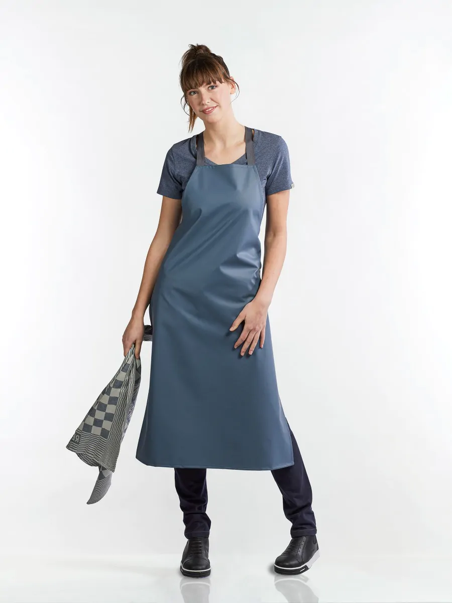 Chaud Devant Afwasschort Sand 56989 en Blue 59389 75x110cm. Deze afwasschorten zijn  waterdichte schorten geschikt als afwasschort. Samenstelling: 72%PVC/28%PL. Afmetingen: Breedte 75 cm en lengte 110 cm. Speciaal ontwikkelde afwasschorten gemaakt van waterdicht materiaal. Het afwasschort (Dish Bib Apron) is verkrijgbaar ook in de kleuren wit, zwart, camel en green. Waterproof. Zie ook onze CD collectie schorten.