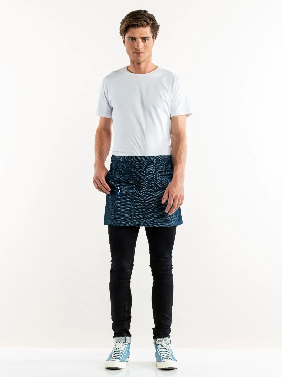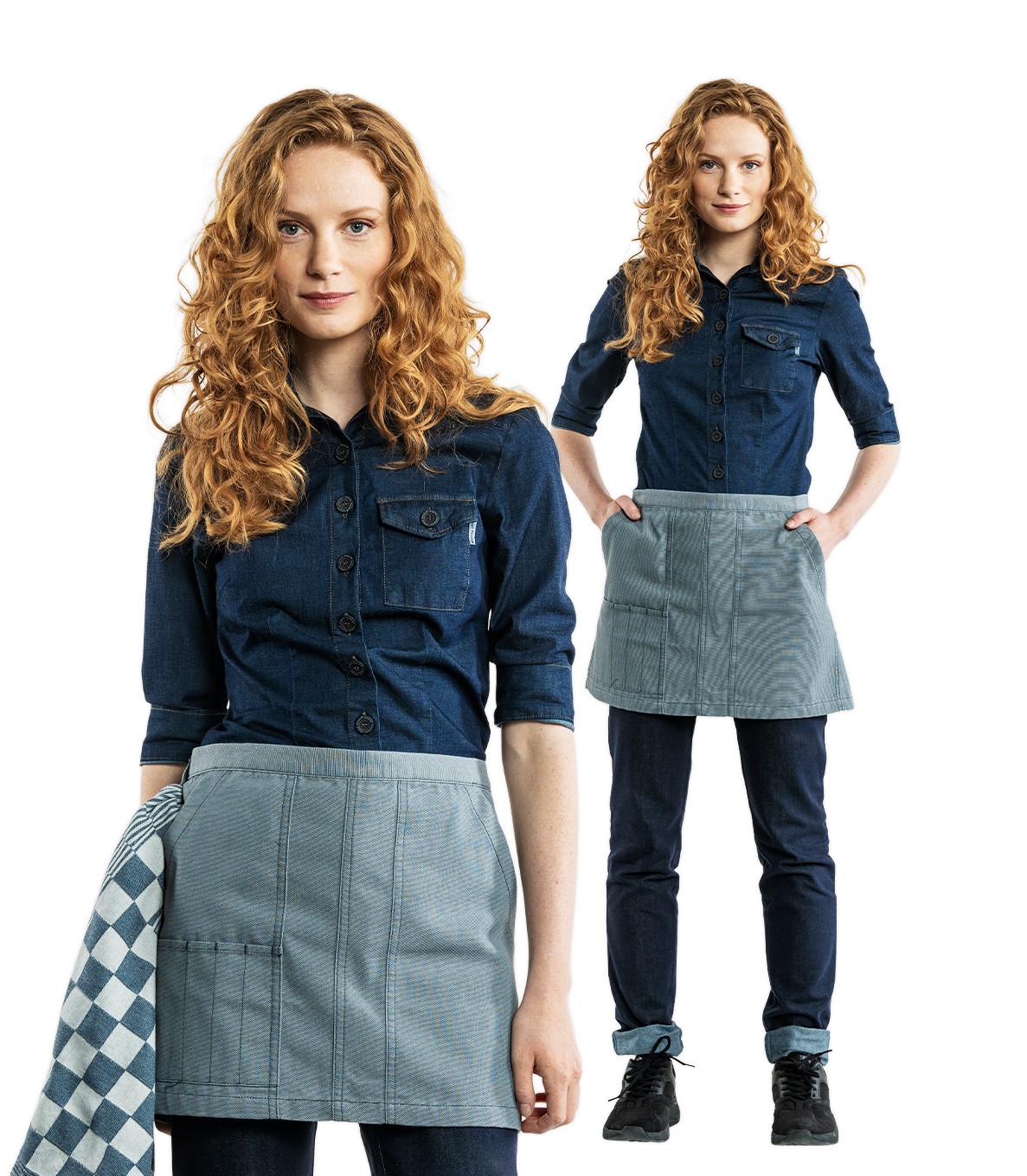 Chaud Devant Crafty sloof Petrol 88799 en Grey 88699 75x35cm. Het Crafty sloof is kort maar krachtig! Met zijn slimme ontwerp heeft dit korte sloof handige zakken en lussen, waardoor je een perfecte plek hebt voor al je gereedschap met behoud van volledige bewegingsvrijheid. De sloof is verkrijgbaar in een breed scala aan kleuren, zodat je niet alleen functioneel, maar ook stijlvol blijft gedurende de dag. Eén maat. Zie ook Serveerkleding en Pure denim collectie