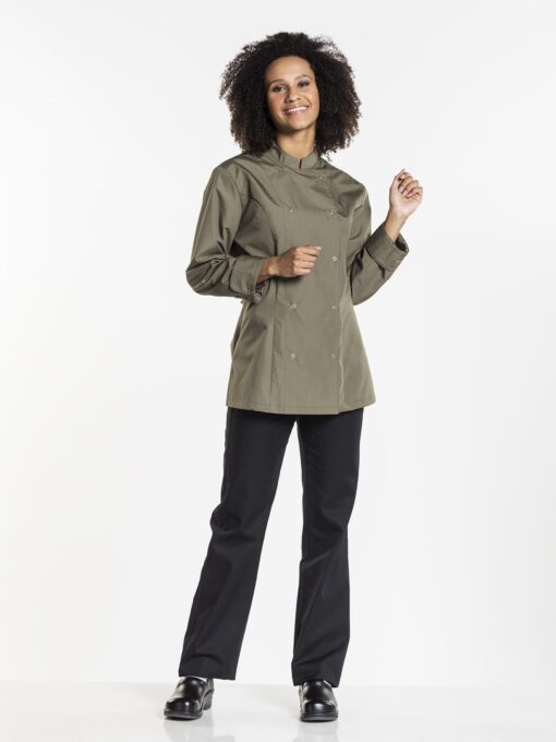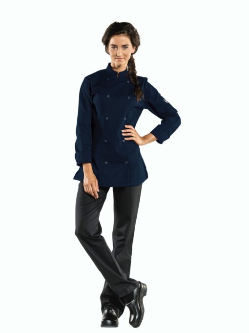 Koksbuizen Chaud Devant Dames Poco Blue LM 271 en Poco Dark Olive 918 zijn klassiekers met drukknopen. Vervaardigd van soepele polyester/katoenen stof. Uitvoering: 67%PL/33%CO. De Lady Poco maakt deel uit van onze BSX-collectie en is ook een echte “basic” koksbuis. Het model is traditioneel en herkenbaar, maar uiteraard wel modern en getailleerd. De stof is praktisch, voelt prettig aan en afgewerkt met zichtbare metalen RVS drukknopen. De Lady Poco koksbuis Blue en Dark Olive zijn uitstekende allrounders. Aanvullend op de prachtige serie koksbuizen zijn er de degelijke serie koksbroeken.