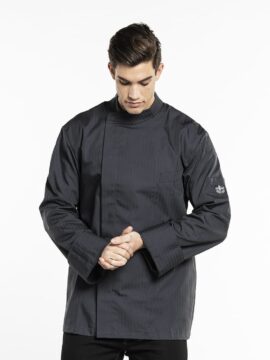 Chaud Devant Koksbuizen Antra 272 LM met luxe uitstraling, vervaardigd van een soepele polyester/katoenen stof. Satijn gestreept met blinde sluiting. Lange mouw. Materiaal: 65%PL/35%CO. Maten S t/m 3XL. De Nova is een uitstekende ‘basic’ koksbuis, maar doet daarbij niet onder in luxe. Zware kwaliteit stof 210 gr/m². De blinde sluiting maakt een chique, maar subtiele indruk en de Franse manchetten zijn zowel elegant als praktisch. De koksbuis is gemaakt van soepel vallende stof met een ingeweven satijn streepje, voor een elegante uitstraling. Deze grijze variant heeft een geheel eigen uitstraling die, afhankelijk van de omgeving, zowel sierlijk als casual kan ogen. Straight Fit. Satin Stripe – Easy Iron. De Nova koksbuis word compleet gemaakt door de koksbroeken, koksmutsen, veiligheidsschoenen..