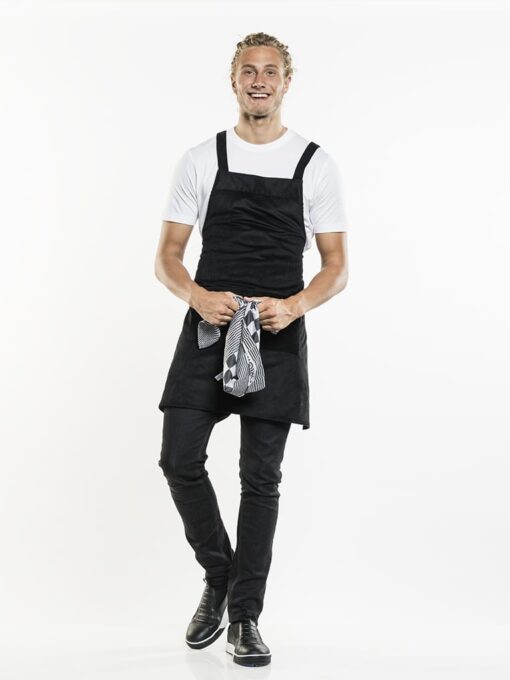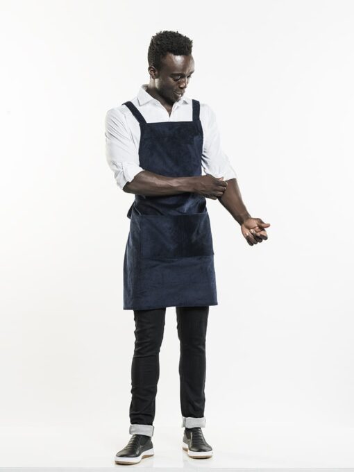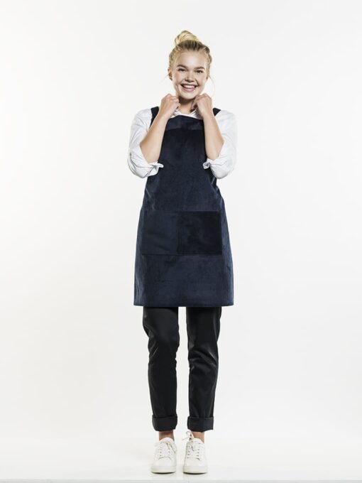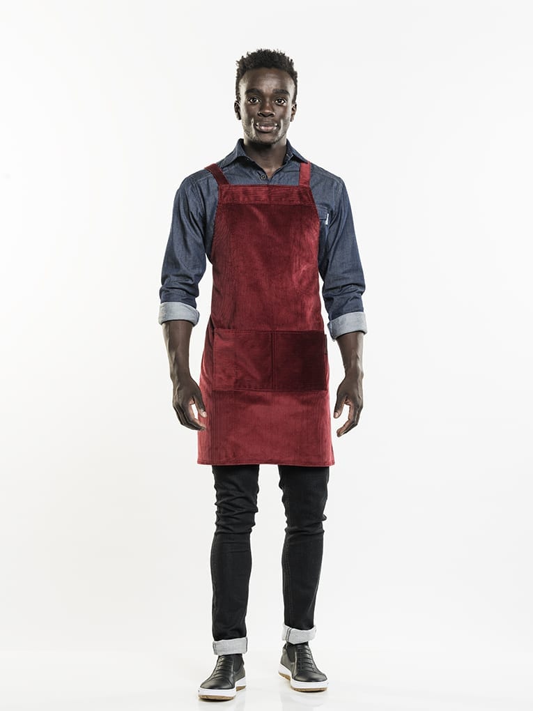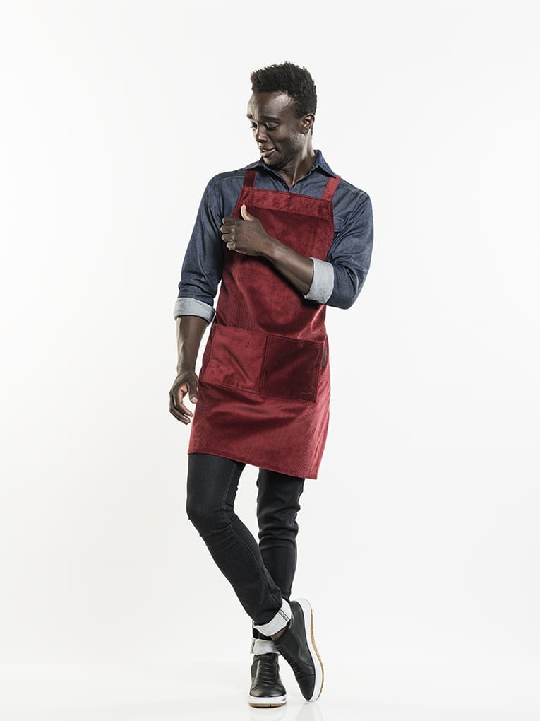 Schorten Chaud Devant Velvet X Cross Red 59699, Blue 59599 en Black 59999 W70-L85cm. Deze corduroy schorten laat zien dat esthetiek, functionaliteit en individualiteit een winnende combinatie zijn. Met twee zakken in het midden aan de voorkant en gemakkelijk verstelbare stropdassen die de druk in de nek verminderen, is dit slabbetje een echte gastvrijheidsheld. De rode fluwelen kleur is een stijlvolle blikvanger. De stof voegt extra diepte toe aan de blauwe kleur en de zwarte kleur is altijd stijlvol en ziet er goed uit in elke keuken en elk interieur. Velvet collectie kan worden gecombineerd met kleding uit de Pure Denim collectie, bedieningskleding en pantalons skinny.