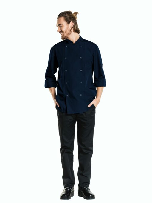 Koksbuizen BSX Hilton Poco Dark Olive 917 en Hilton Poco Navy 249 zijn vervaardigd van een soepele polyester/katoenen stof en deze Hilton koksbuizen maken deel uit van de BSX-collectie echte ‘basic’ koksbuizen. Recht model ruimvallend met drukknopen. Lange mouw. Het model is traditioneel en herkenbaar, maar uiteraard wel modern uitgevoerd. De stof is praktisch en voelt prettig aan. Deze uitstekende allrounder is afgewerkt met zichtbare metalen RVS drukknopen en heeft een voordelige prijs. Aanvullend op de prachtige serie koksbuizen zijn er de degelijke serie koksbroeken.