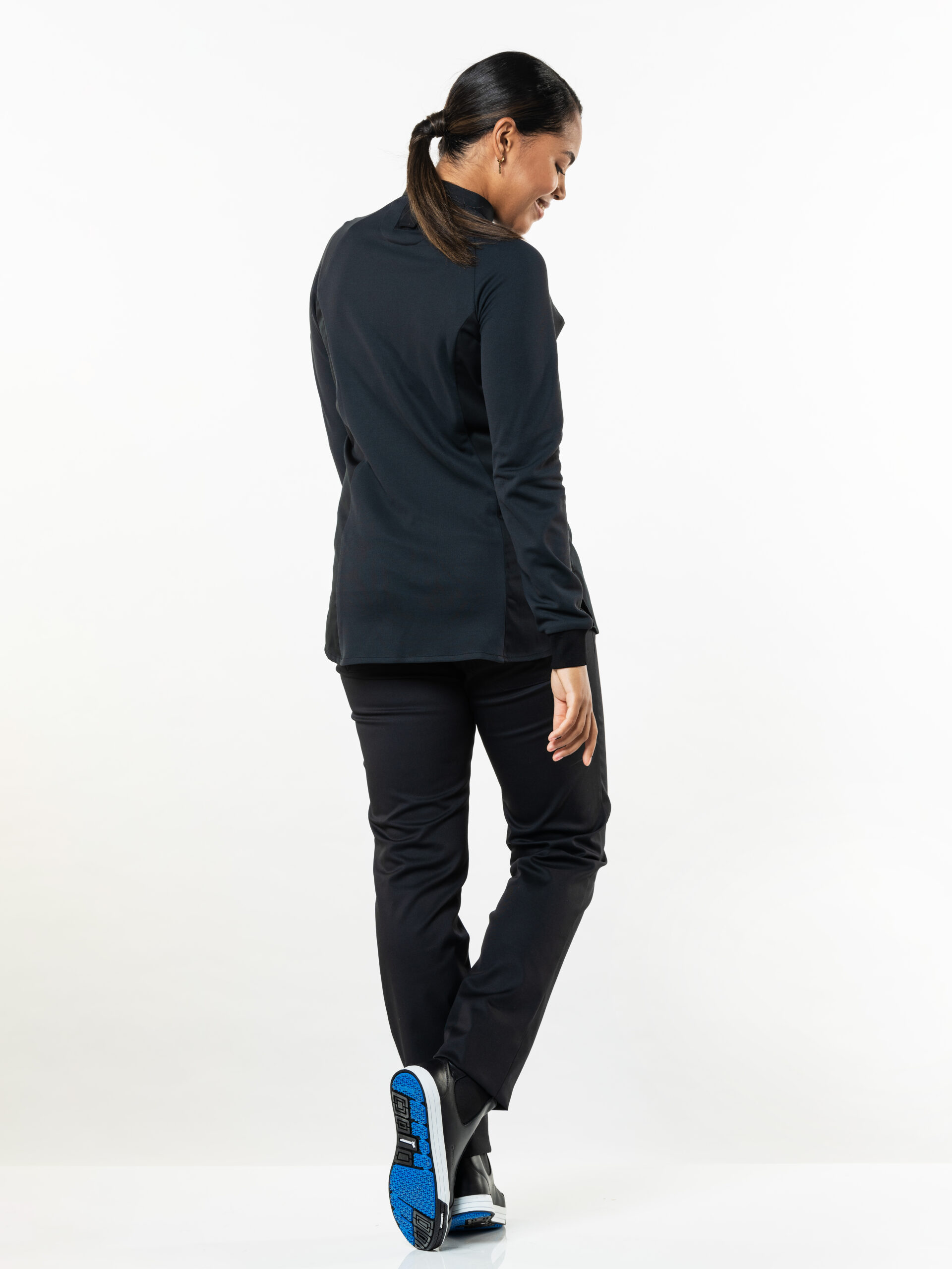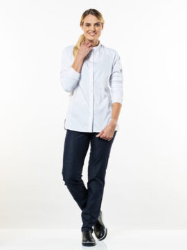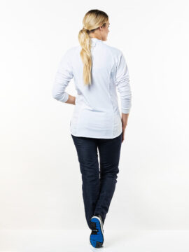 Koksbuis Chaud Devant dames Sorella UFX Wit 253 en Zwart 254. Deze strakke, minimalistische buis met slanke fit, is het zusje van onze Fratello jas voor mannen. Buiten zijn vrouwelijke snit is deze buis identiek aan onze mannelijke variant. De manchetten en luchtige jersey achterpanden geven deze buis een fijne combinatie van stijl en functie. De Raglan-zetting van de jersey stof in de mouwen zorgt voor een sportieve en jeugdige twist. Door de lus aan de achterzijde behoudt deze jas ook in combinatie een met schort haar minimalistische look. Maten XS-3XL. Zie Forene collectie