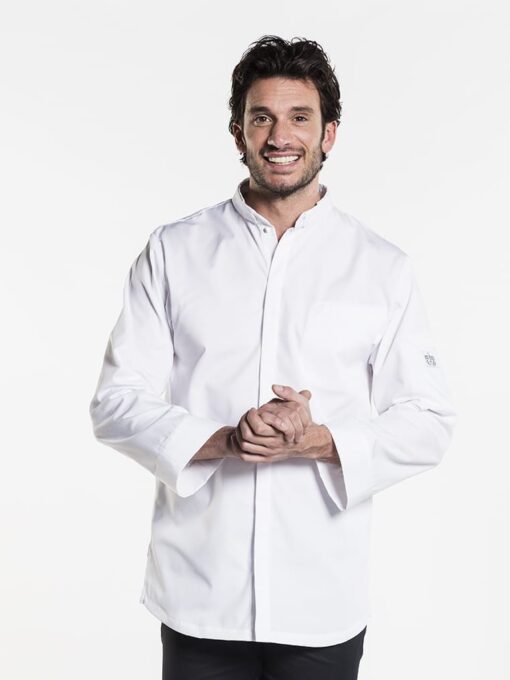 Koksbuis Chaud Devant Nordic White 29600 heeft een Scandinavisch design dat zich kenmerkt door functionaliteit en eenvoud. Zo heeft de jas een blinde sluiting en een handige borst- en pennenzak. De kraag is modern en afgewerkt met de stiksels van een bies. De Nordic chef jacket is ontworpen met meesterkok Joris Buitendijk van Restaurant RIJKS in Amsterdam. De koksbuis is gericht op bewegingsvrijheid en comfort. Deze variant heeft een sneeuwwitte kleur, waardoor de koksjas makkelijk kan worden gecombineerd met een leuke koksbroek, schort, sloven. Maten: XS-3XL.