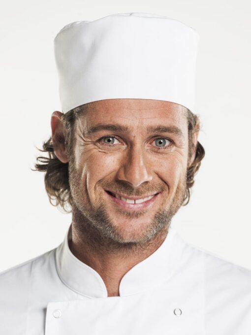 Koksmuts Chaud Devant Bandi XO Dark Olive 37099, Wit 36299 en Zwart 36199 zijn bescheiden koksmutsen met een strak gestileerd model. De klittenbandsluiting zorgt ervoor dat deze bandi op een ieders hoofd past. ‘One size fits all’. De Dark Olive behoort tot de BSX collectie. Voor koks en andere keukenmedewerkers zijn de koksmutsen een belangrijk kledingstuk. Aanvullend op koksbuizen, koksbroeken. De koksmuts beschermt bij het bereiden van voedsel tegen losse haren. De traditionele koksmuts heeft vele veranderingen ondergaan. Een koksmuts was in het verleden een baret met een poffende rand. Tegenwoordig zijn er meer modellen te verkrijgen. Het type koksmuts dat word gedragen hangt af van de sfeer en uitstraling van de horecabedrijf. Materiaal: 67% polyester/33% katoen. De groene kleur van deze bandi is uniek in de keuken en zal zeker indruk maken. Korting bij afname van 2 stuks.