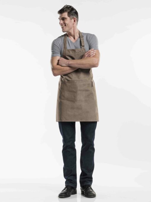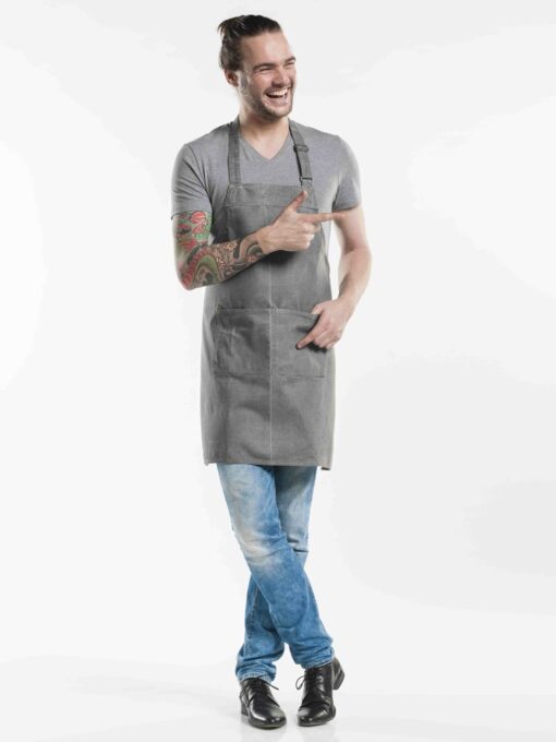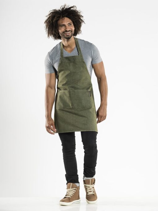 Schorten Chaud Devant Base Denim Green 50999, Grey 51199, Mud 69499 en Brown 51399 zijn schorten uit de Pure Denim Collection. De schorten zijn sterk, puur, rauw en tonen karakter. Denim is populair! Daarom is deze collectie de perfecte samensmelting van mode en werkkleding. De stoere schorten hebben twee zakjes middenvoor en de nekband is dankzij een metalen gesp gemakkelijk te verstellen. Met de juiste look van het personeel maakt u de totaalervaring van een restaurantbezoek van gasten compleet. Een stoere uitstraling, die niet ten koste gaat van kwaliteit of gemak. Materiaal: 100% katoen. Afmeting: W70 x L75cm. De Pure Denim artikelen zijn niet geschikt voor industriële reiniging. Let op, denim kan afgeven. Een horeca schort is onmisbaar, het straalt professionaliteit uit en bied bescherming. De schorten zijn niet geschikt voor industriële reiniging. Denim kleding specifiek voor het bedienend personeel.