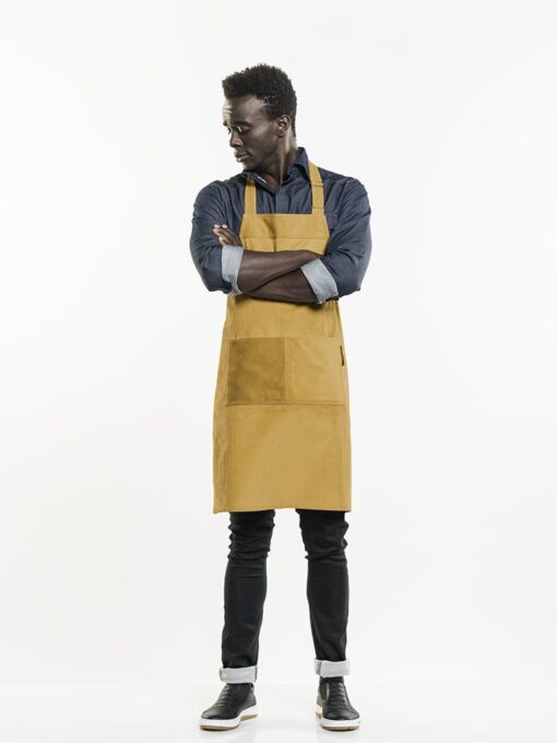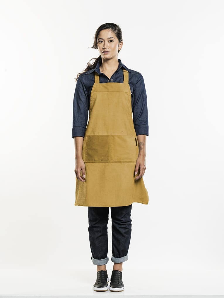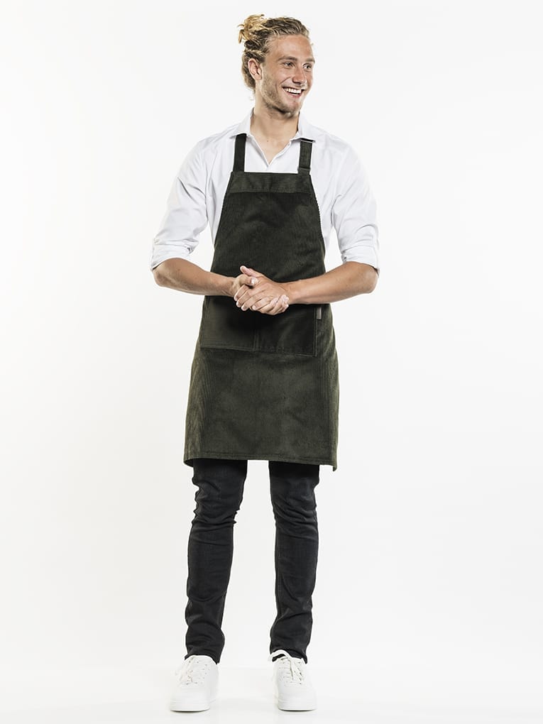 Schort Chaud Devant Velvet Green 52199 en Yellow 51999 W70-L85cm. Deze traditionele slabbenschortmodellen zijn vervaardigd van corduroy, met de functionaliteit als één van de topprioriteiten. Met twee handige zakken in het midden aan de voorkant en een gemakkelijk verstelbare nekband, is het een one-fits-all. De mosgroene kleur draagt bij aan de rustieke uitstraling van het slabbetje. De diepgele kleur ziet er geweldig uit in combinatie met een zwarte broek. Velvet collectie kan worden gecombineerd met kleding uit de Pure Denim collectie, bedieningskleding en pantalons skinny.