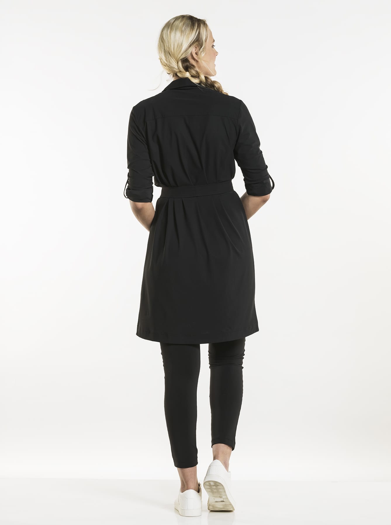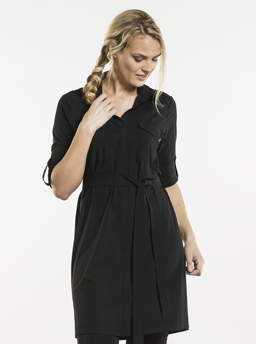 Sense Chaud Devant Dress Ginger Black 822. Deze blousejurk heeft een Loose fit. De borstzakken, V-hals met kraag en front split geven het design een speelse look. Het model is daarnaast flexibel doordat de jurk op persoonlijke maat getailleerd kan worden met de bijgevoegde band. Een model dat prachtig afkleedt en waar iedereen zich prettig in voelt. Als u de kleding wilt schenken dan kunt u de kleding in een gratis geschenkverpakking laten verpakken. Geschenkverpakking is niet standaard vraag het speciaal aan. Zie ook al onze bedieningskleding.