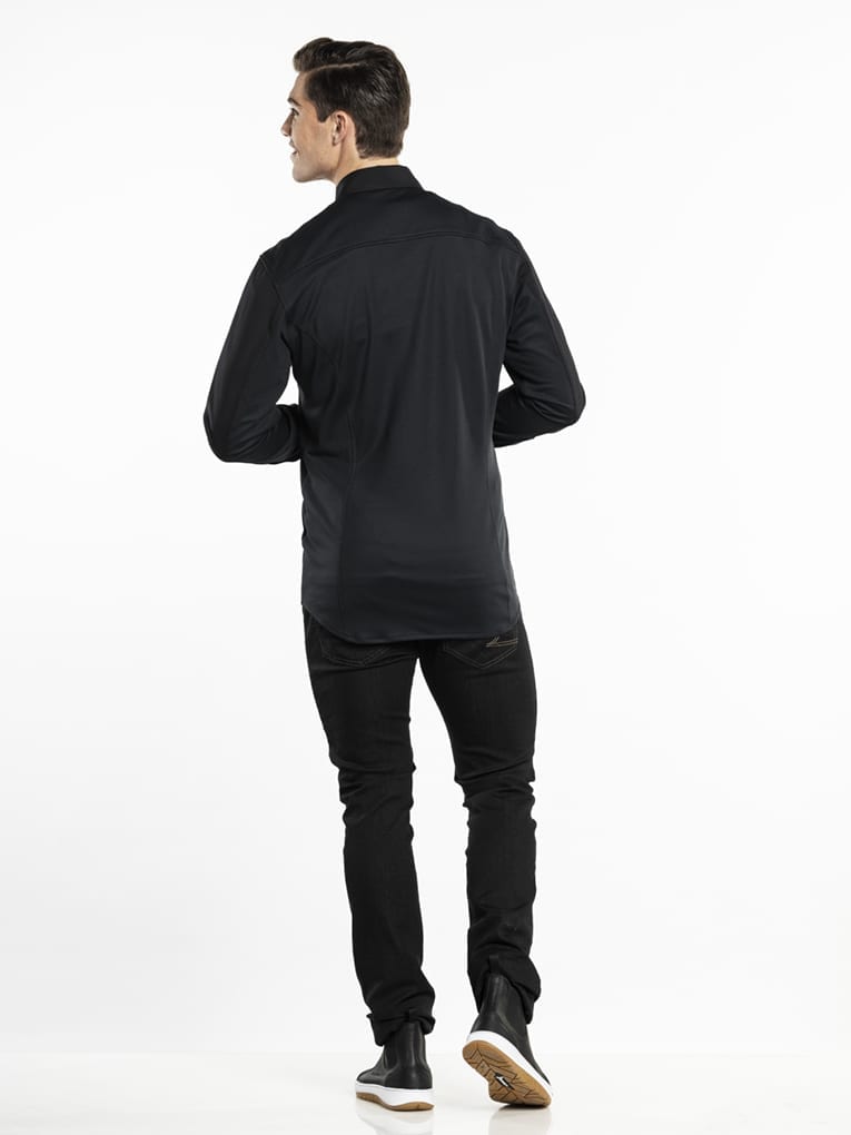 Kreukherstellende soepele stof met een comfortabele pasvorm: dat maakt deze bedieningsshirts prettig om in te werken. Dankzij de stretch bewegen de shirts makkelijk mee met je lichaam, en de gladde, geweven stof straalt kwaliteit uit. Bijzonder aan deze shirts zijn de luchtige jersey achterpanden. Deze herenshirts hebben een blinde sluiting met knopen en zijn goed te combineren met onze schorten en sloven. Uitgevoerd in de kleuren wit (606) en zwart (609). Zie ook onze Pure Denim collectie.