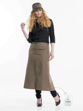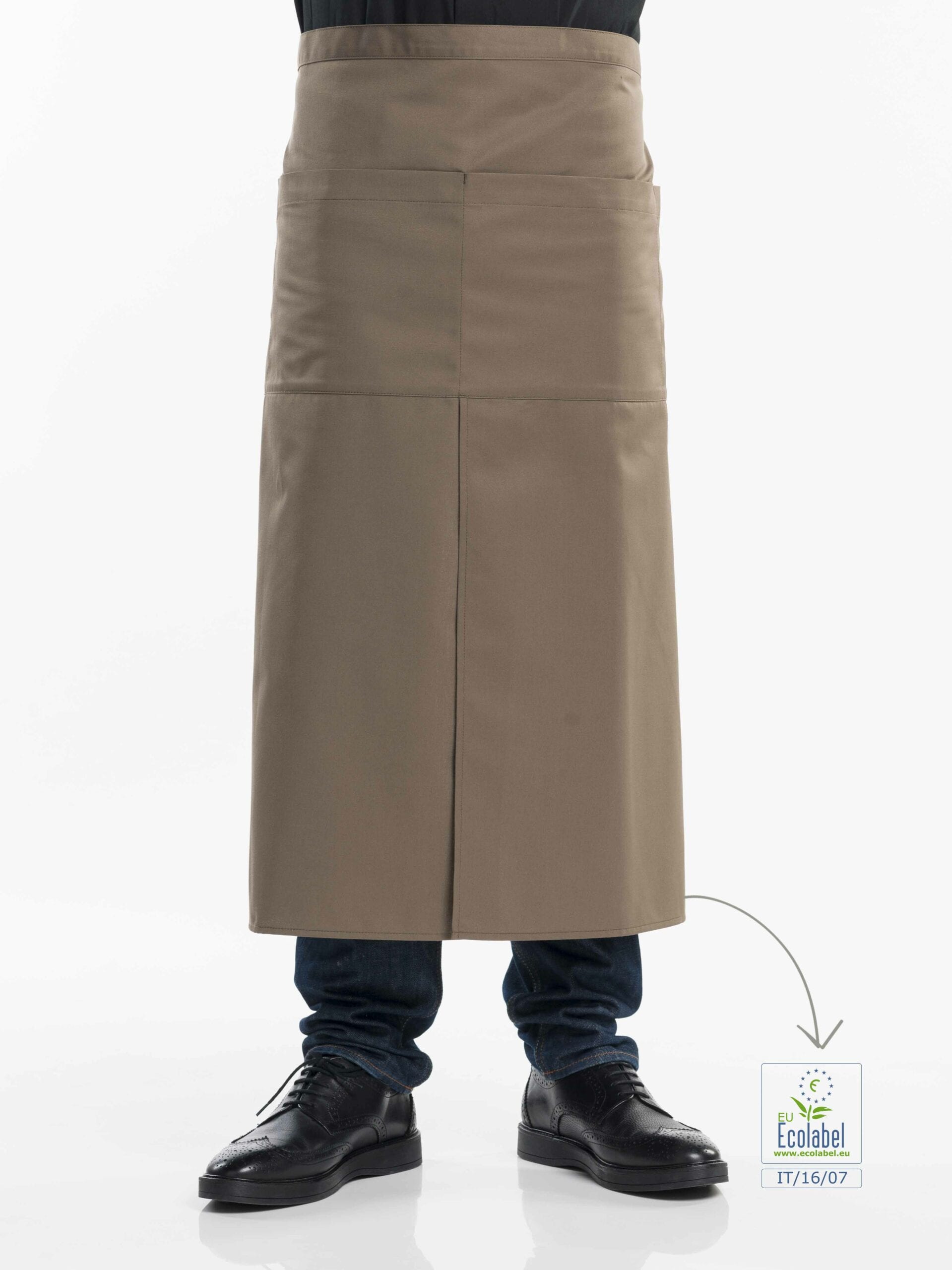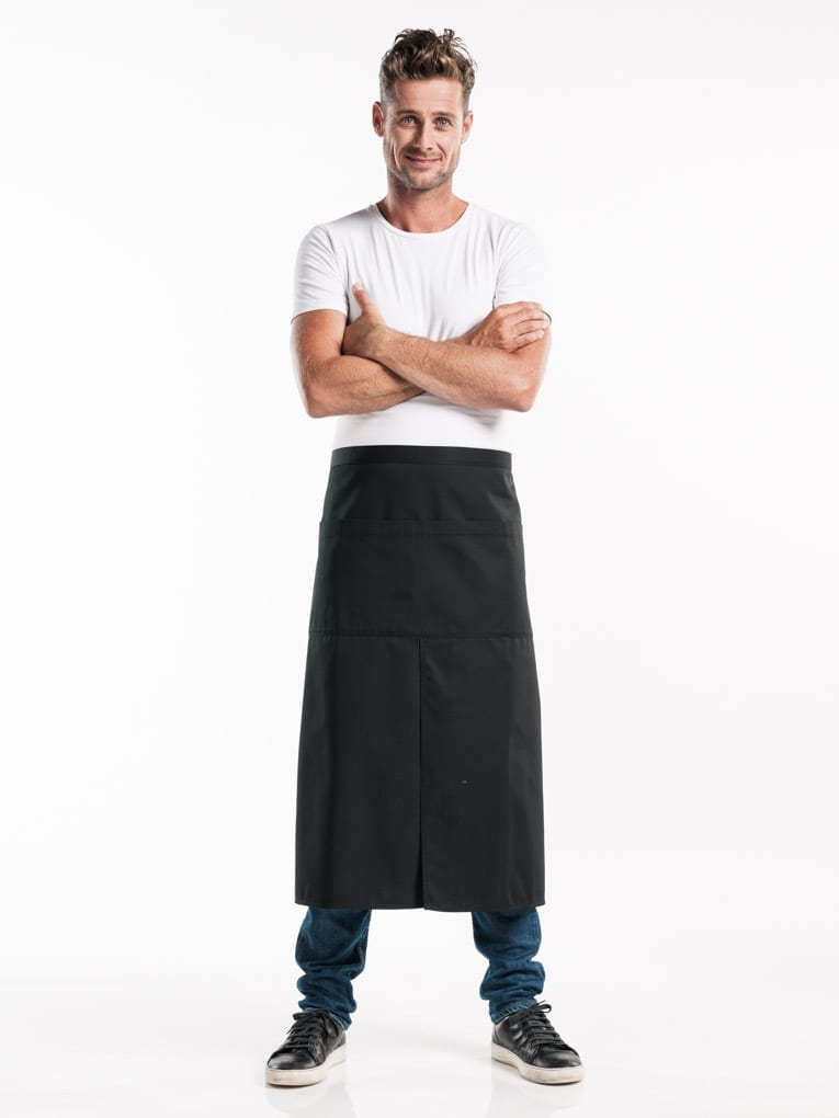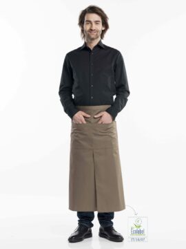 Sloof Chaud Devant Taupe 49079 en Zwart 49179 4 zakken 90x80cm. Vervaardigd van polyster/katoenen stof. Voorzien van 4 zakken. Afmeting 90×80 cm. 65%PL/35%CO. De split middenvoor zorgt voor extreme bewegingsvrijheid, maar geeft de sloof ook een stoere look. De sloof is verkrijgbaar in vier varianten: Black, Taupe en Black Denim. Zie ook onze collecties Pure Denim en Black Label.